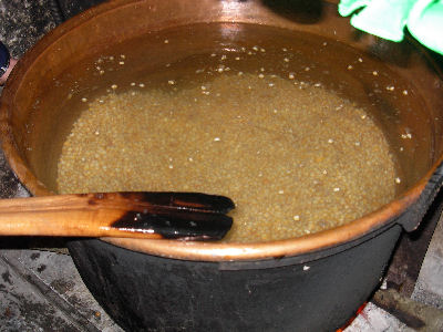 La festa ha inizio all’imbrunire del 16 gennaio e tutta la famiglia si riunisce attorno al focolare e dice la “Rasione” ovvero il rosario con le orazioni al Santo. Si svolgeva in case antiche dotate di vecchi camini dove accendere il fuoco, alimentato con legna di ginepro, dai fumi aromatici, e da fascine di legno “Marroche”. Nel camino viene posto un treppiedi e su di esso un’enorme caldaia di rame “Cottora”, in cui viene messa a cuocere una grande quantità di granturco in acqua e sale “Cicerocchi”. Questo granturco veniva offerto da coloro che lo coltivavano alla gente che faceva la cottora. All’ora dei vespri, tutta la gente della Cottora si recava in chiesa per la messa vespertina del Santo, finita la messe iniziava la festa, ovvero tutta la gente del paese andava in queste Cottore, per prendere qualcosa da mangiare. Nelle Cottore intanto erano cominciati i giochi ad esempio “La Cucucciara” per i bambini “Peccenara”, mentre i grandi ballavano sotto le note di fisarmoniche e “Arganette” armoniche. I più anziani invece stavano attorno alla Cuttora per girare i Cicerocchi di tanto in tanto, fumando la Pipa “Tra i fume e i breccone” e bevendo un pò di vino, attorno al focolare poi venivano poste immagini del Santo circondate da numerose arance “Pertecalle” che simboleggia l’offerta primiziale. Il Sacerdote poi, alla sera, preceduto da un corteo di ragazzi con fiaccole e con strumenti musicali, si reca a ciascuna Cottora per benedirla.